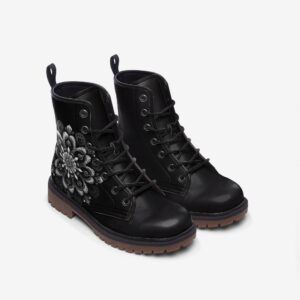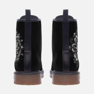 Black Mandala Leather Boots Fleece Fur Boots