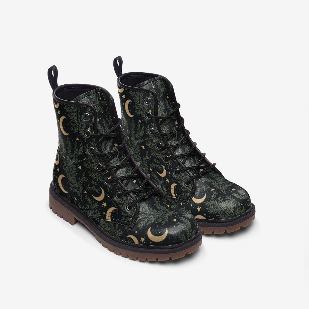 Boho Witch Moon Leather Boots Fleece Fur Boots