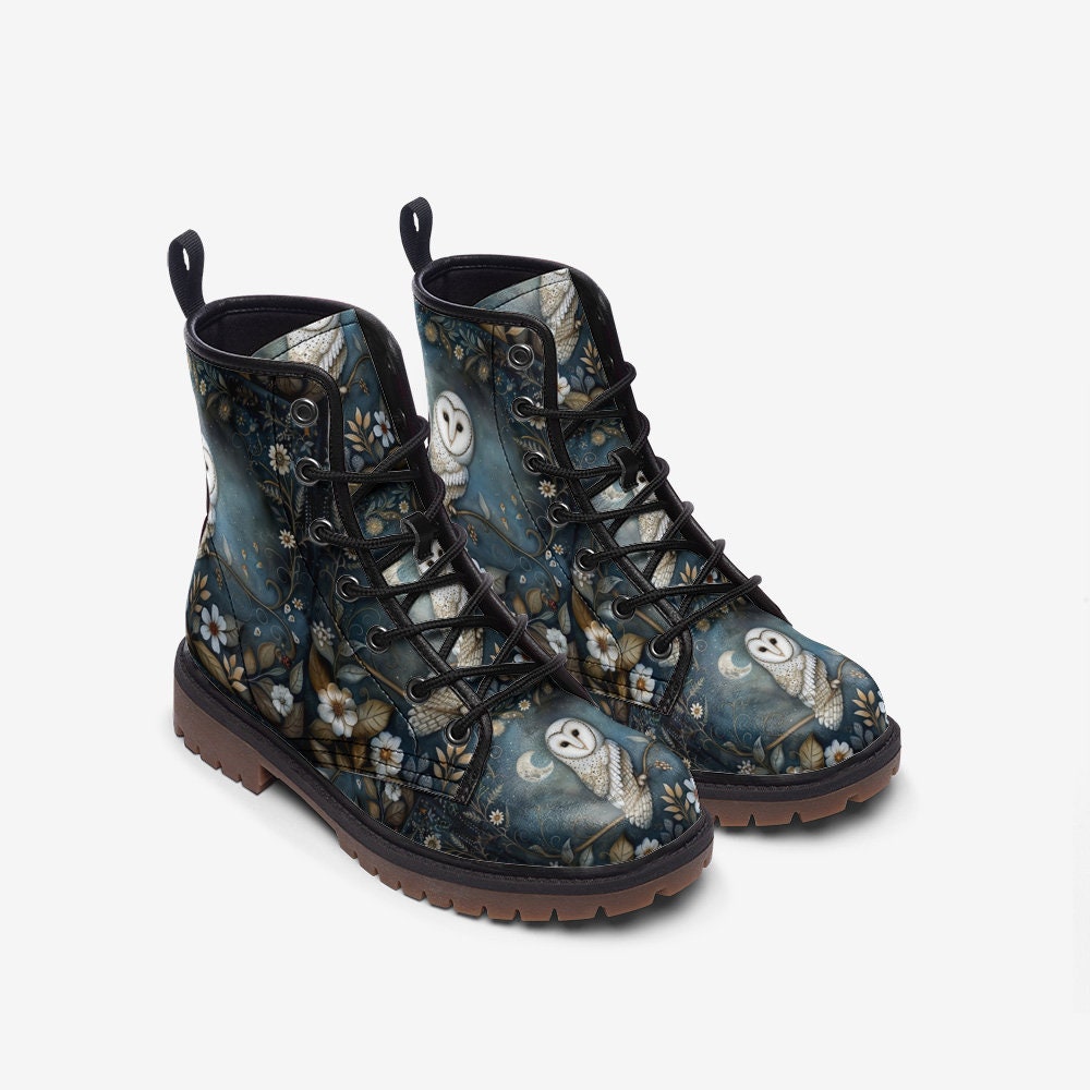 Owls in the Moonlight Leather Boots Fleece Fur Boots